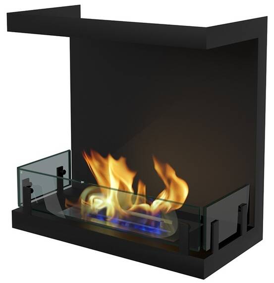 - биокамин торцевой не требует дополнительного монтажа дымохода;